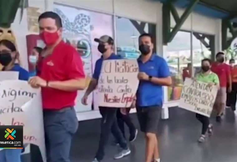 Con algunos carteles se manifestaron esta mañana concesionarios y trabajadores del Depósito Libre de Golfito.