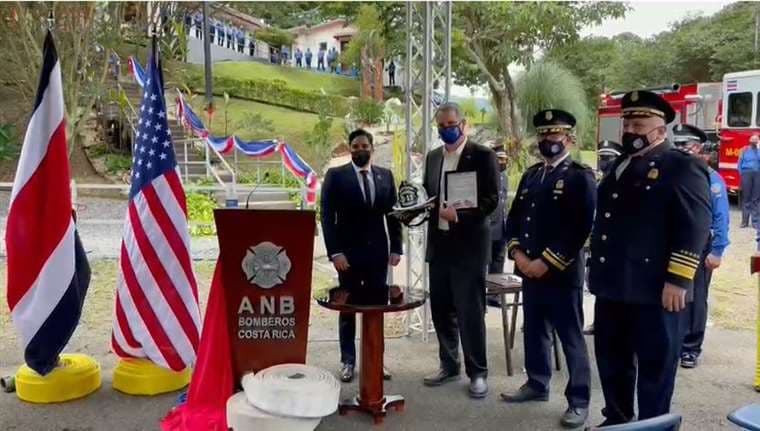 Como símbolo de hermandad entre países, el Cuerpo de Bomberos de Costa Rica entregó un casco conmemorativo a la Embajada de Estados Unidos.