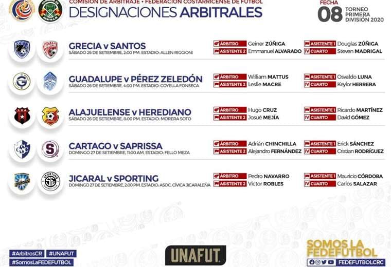 El resto de elegidos son Geiner Zúñiga quién tendrá a cargo el partido de Grecia vs Santos de Guápiles el sábado a las 2:00 p. m.