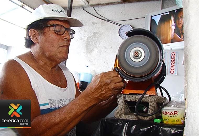 Él se convirtió en afilador de cuchillos, machetes, serruchos y tijeras.