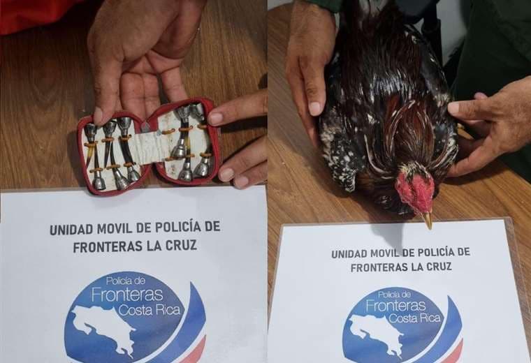 El individuo, de apellido Lazo y nacionalidad costarricense, llevaba consigo un gallo de pelea, mutilado para participar en estas violentas prácticas, además de una caja con 11 espuelas de posible carey.