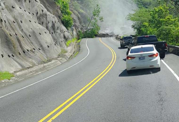 La Ruta 27, que comunica San José y Caldera, está cerrada temporalmente por la caída de piedras y otros materiales sobre el asfalto.