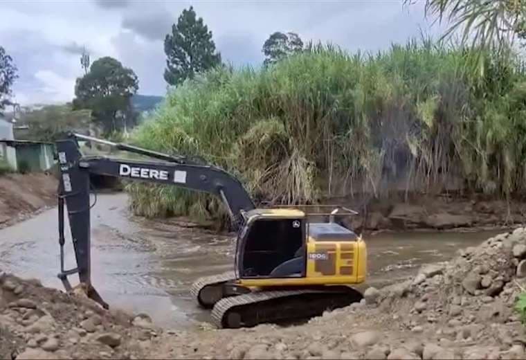 Desde el pasado sábado, maquinaria del gobierno local trabaja en la limpieza del cauce, retirando sedimentos, piedras y desechos sólidos que obstruyen el flujo natural del agua.