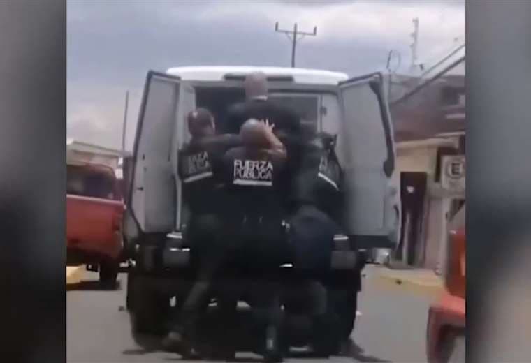 Un video publicado en redes sociales muestra el momento en que lo suben a la "perrera" de la Fuerza Pública.