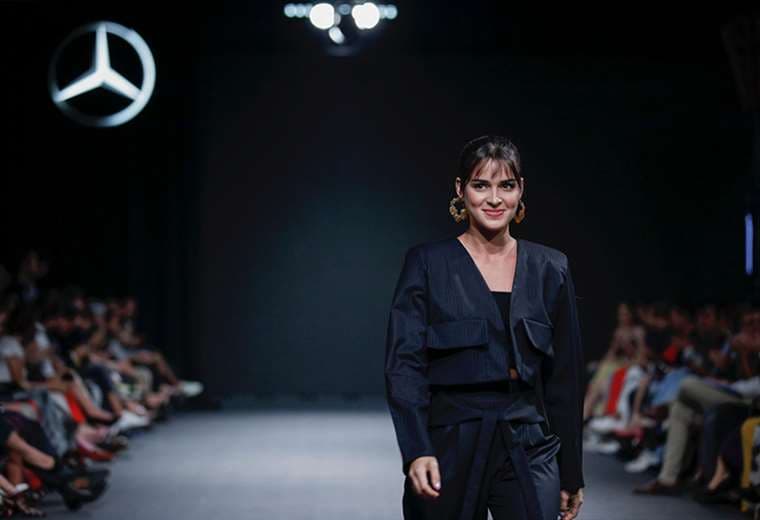 La primera dama, Claudia Dobles, luce un atuendo de Jessica González durante el Mercedes-Benz Fashion Week.
