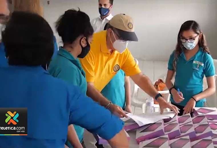 El Club Rotario de San Pedro entregó 50 tabletas a estudiantes de Tirrases, Curridabat, para que puedan continuar sus estudios.