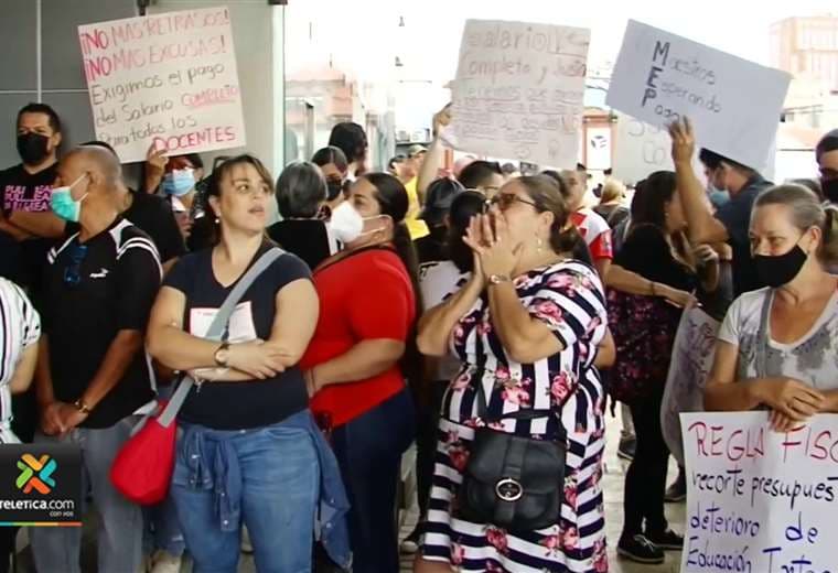 Un grupo de educadores se manifestó este martes en las afueras de los ministerios de Educación y Hacienda por incumplimiento en el pago de sus salarios.