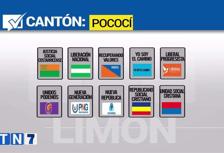 En estas elecciones municipales en Pococí, participan los siguientes 10 partidos políticos:
