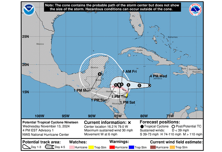 “La trayectoria, según el Centro Nacional de Huracanes de Estados Unidos (NHC, por sus siglas en inglés), es que se vaya internando hacia el golfo de Honduras. Pero su cercanía va a mantener, en los próximos días, importante flujo de vientos y nubosidad al país”, agregó Morera.