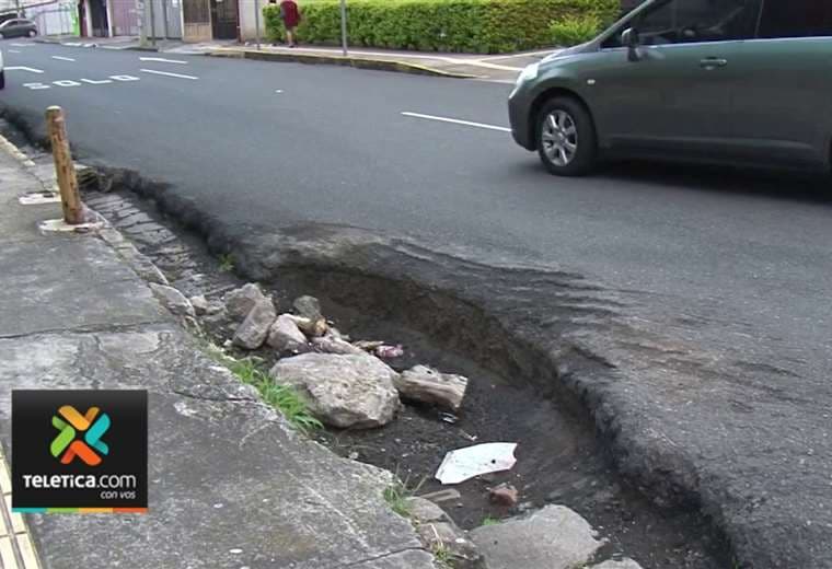 Un enorme hueco pone en peligro a conductores y peatones que transitan por el cantón de Tibás.