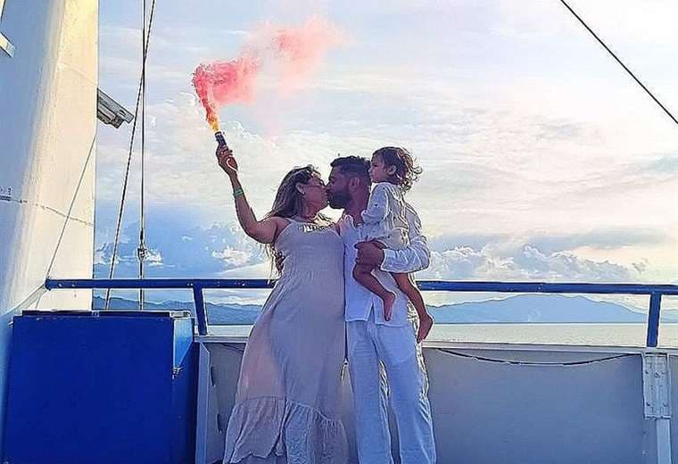 La pareja de esposos, Sergio y Alejandra, realizaron la revelación en la cubierta del sol del San Lucas II.
