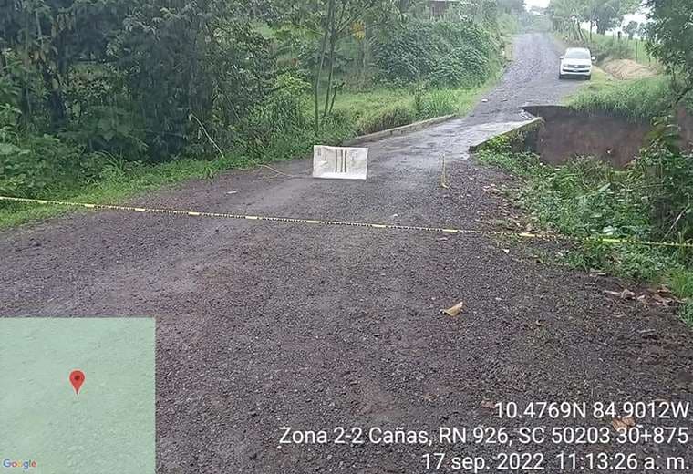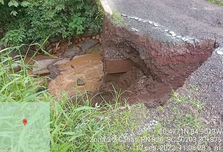 Conavi también informó sobre el cierre total de la Ruta 304, tampoco hay paso en la Ruta 926, entre Tronadora y Tilarán.