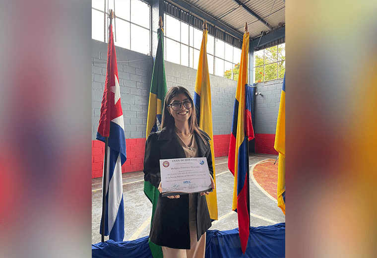 Melanie Fonseca es una estudiante del Liceo de Poás, quien, con 17 años, es la única alumna de un centro educativo público que logró tener un cupo para ser parte de un evento llamado Modelo de Naciones Unidas (MUN).