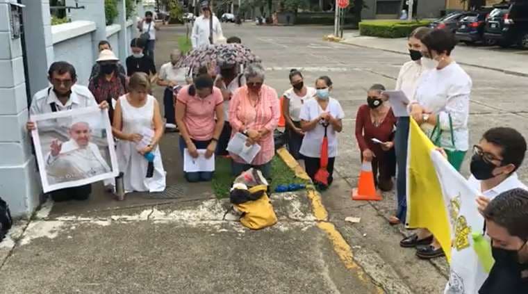 “Estos fieles fueron a la Nunciatura a rezar el Rosario, no es una manifestación ni nada por el estilo, si no nada más rezar y entregarle al Nuncio una carta que hicieron pidiéndole que use sus buenos oficios para ver si se puede lograr algo con el obispo de Alajuela”, comentó Varela.