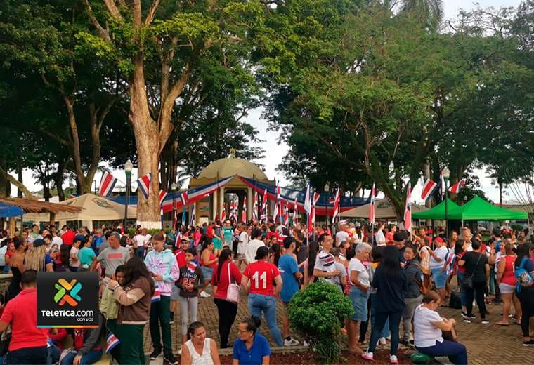 Personas de todas las edades llegaron desde las 5 a. m. al parque central para celebrar el paso del símbolo patrio.