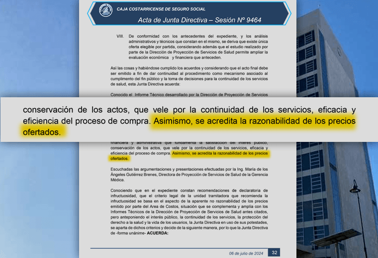 El informe fue la base a partir de la cual la Junta Directiva de la Caja de Seguro Social se apartó del criterio que recomendaba declarar la infructuosidad del concurso, así como de las opiniones sobre la razonabilidad de los precios.