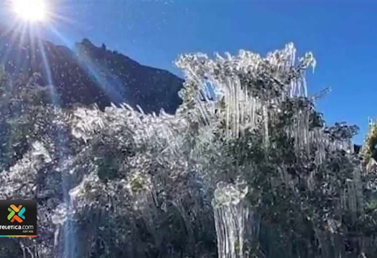 “Lo que ocurre es que la humedad, que está presente en el aire se termina condensando al bajar la temperatura en alguna superficie, que puede ser hojas de árboles, por ejemplo, al bajar mucho la temperatura, esta humedad termina congelándose, convirtiéndose en cristales de hielo”, explicó Roberto Vindas, meteorólogo.