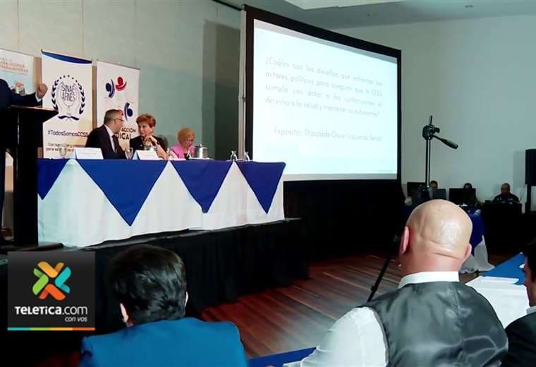 Representantes de la Junta Directiva de la CCSS, sindicatos e incluso el expresidente ejecutivo de esta institución, Román Macaya, participaron en esta actividad.