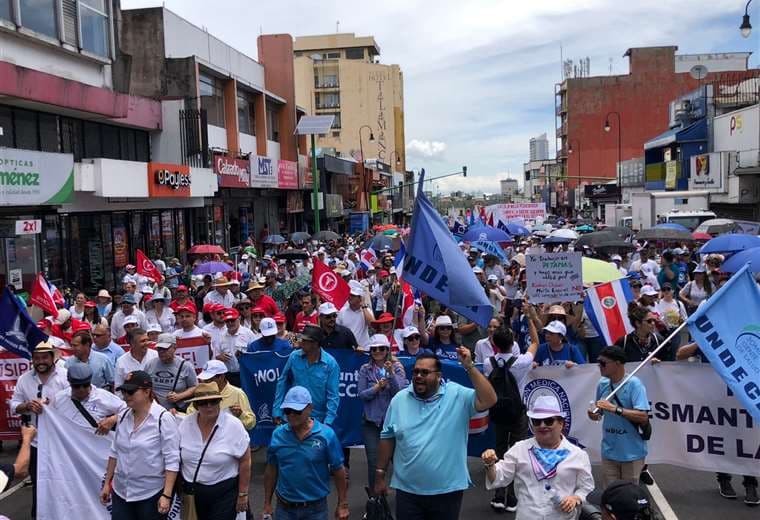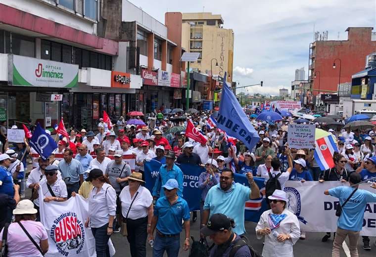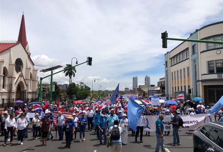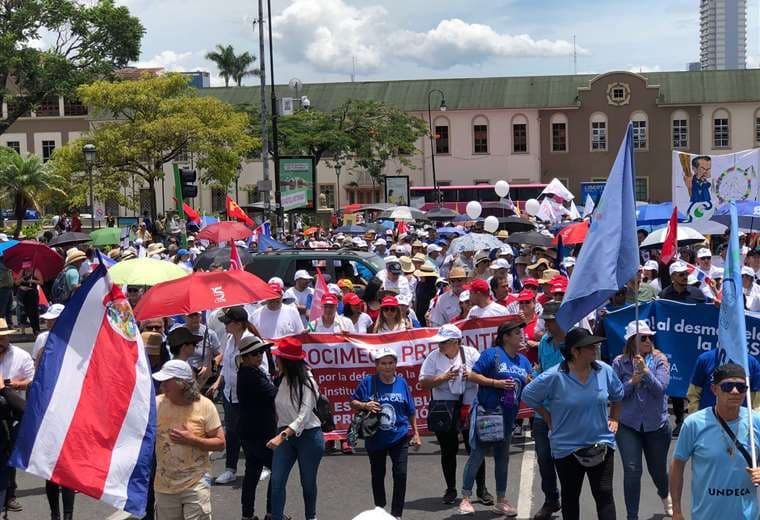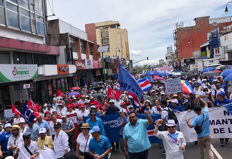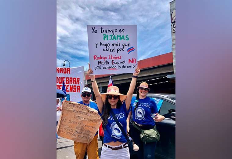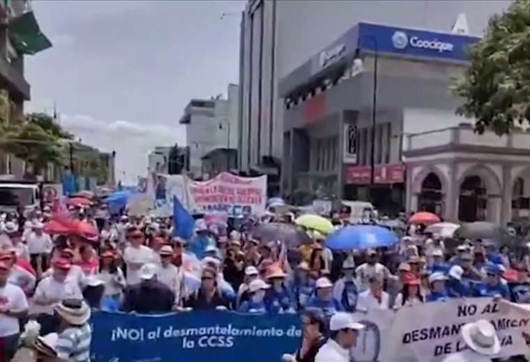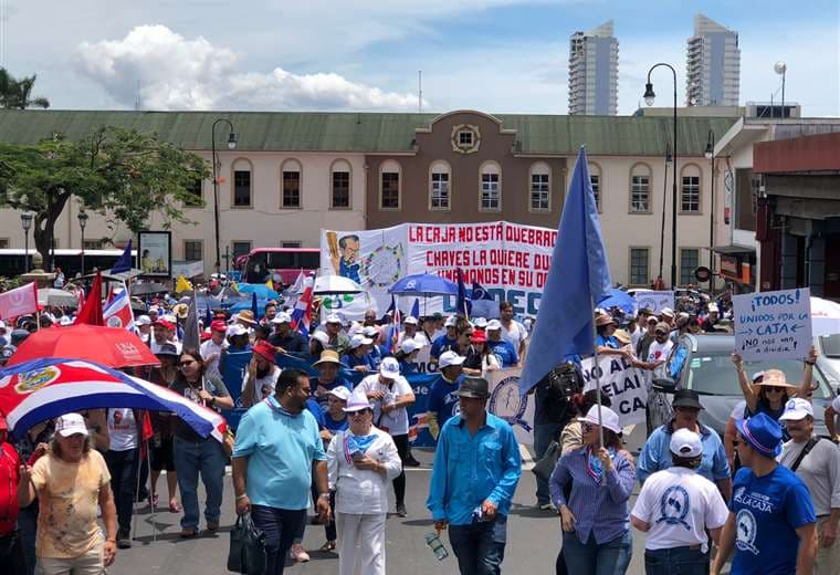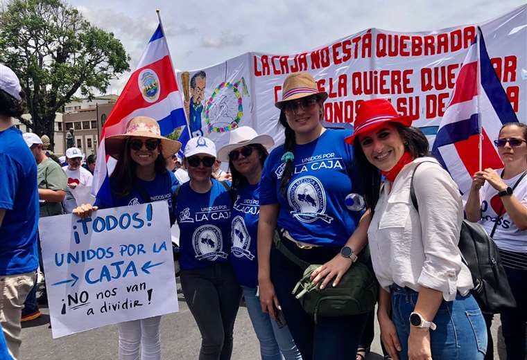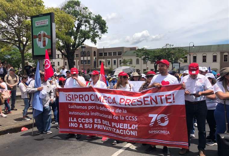La consigna “¿De quién es la Caja? Del pueblo que trabaja” se escuchaba al unísono en la “Marcha por la defensa de la CCSS: Un paso hacia el futuro”, protagonizada por el sector salud, este sábado, con acompañamiento de actores civiles y sociales.