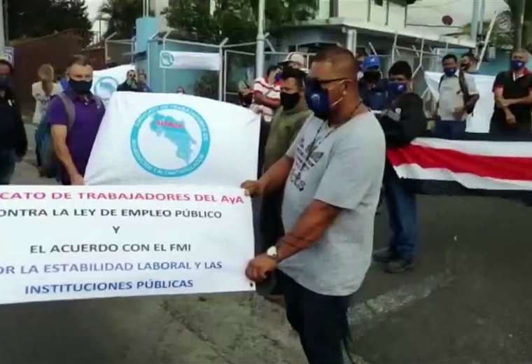Un grupo de funcionarios de Acueductos y Alcantarillas (AyA) se manifestó la tarde de este lunes contra la ley de empleo público.
