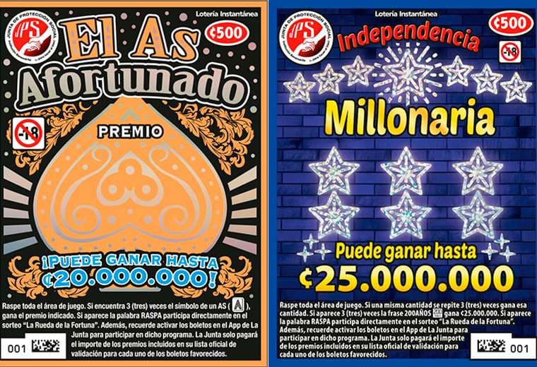 Se trata de "Independencia millonaria" y el "As afortunado". El primero tiene un premio mayor de ₡25 millones y el segundo entregará hasta ₡20 millones.