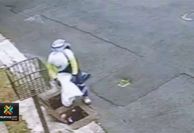Cámaras de seguridad captaron a un empleado de una empresa contratada por la Municipalidad de Curridabat botando basura en alcantarillas cuando su trabajo es limpiarlas.