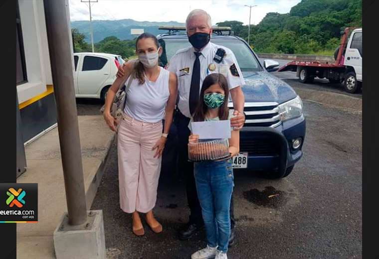 La niña fue junto a su mamá, al día siguiente de esta situación, para llevarle la carta y un queque al oficial a la Delegación de Tránsito de Atenas.