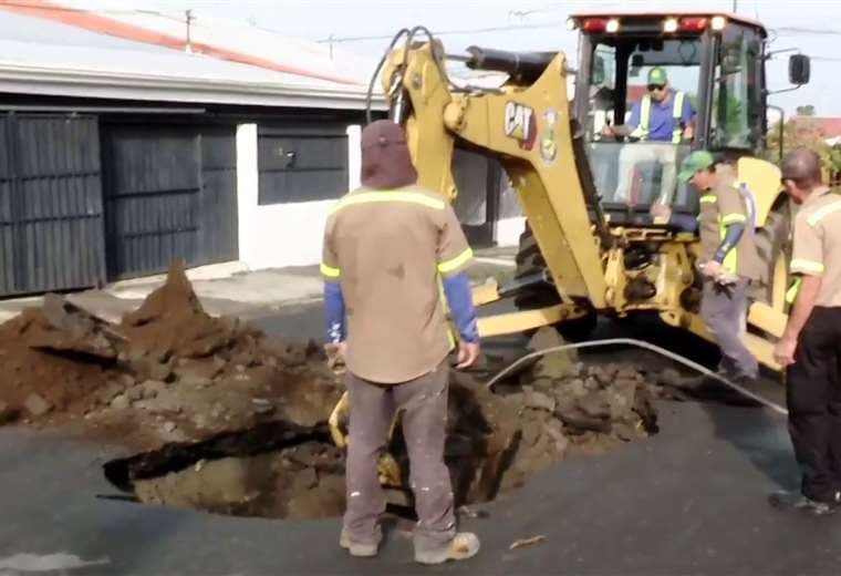 El hueco se abrió a eso de las 7:00 p. m. del miércoles y 12 horas después, un equipo del gobierno local ya trabajaba en determinar el origen del problema, según el vocero del municipio tibaseño, José Cojal (vea video adjunto de Telenoticias).