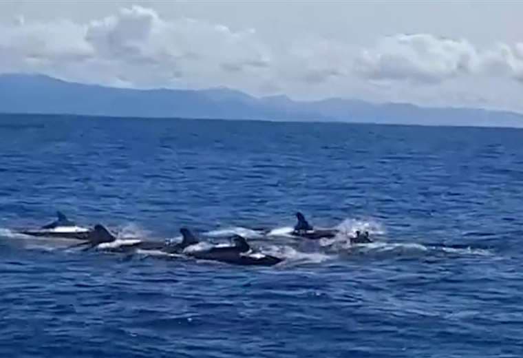El espectáculo marino se dio por parte de la especie llamada Pseudorca crassidens o falsa orca.