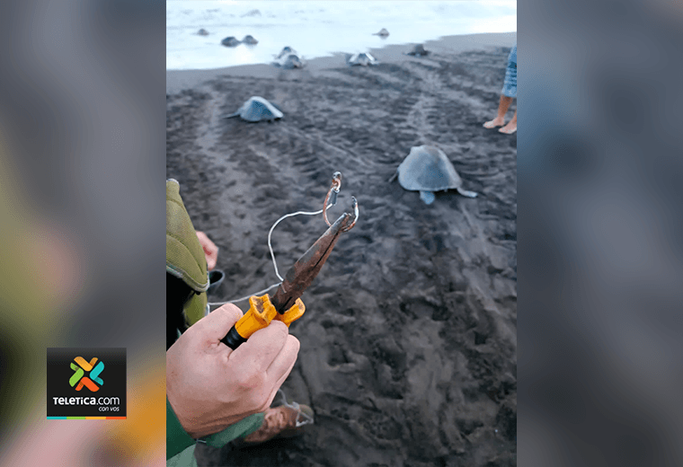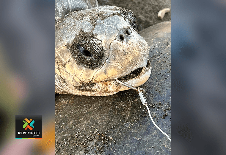 “Tenía un anzuelo pegado a su mandíbula, esto sucede porque las tortugas llegan a la línea de pesca, muerden la carnada y el anzuelo queda pegado en la mandíbula o bien lo tragan. En este caso el anzuelo estaba pegado en la mandíbula entonces usando una técnica con alicate se le pudo extraer, pero si estuviera adentro de la tortuga no se puede sacar, solo cortar la cuerda”, comentó Andrés Jiménez, guardaparques.
