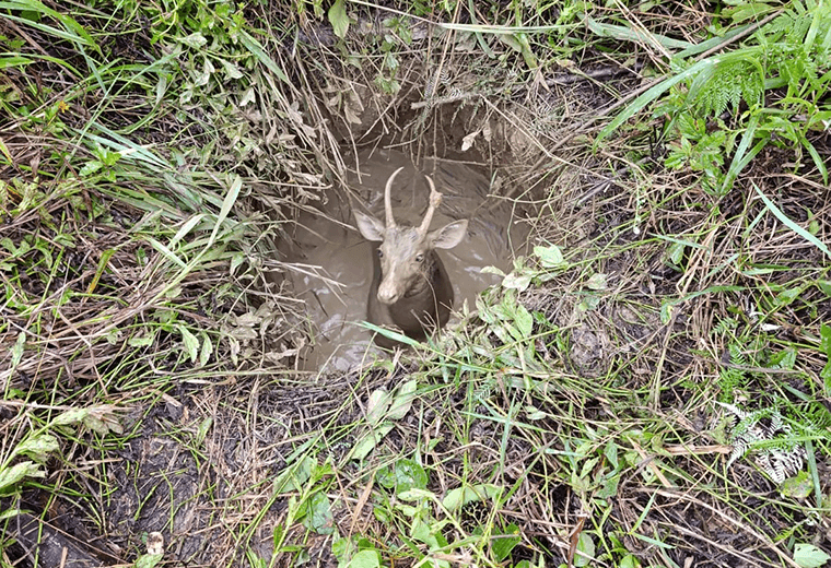 ¡Héroes del bosque! Bomberos salvan a venado que quedó atascado en pozo de lodo