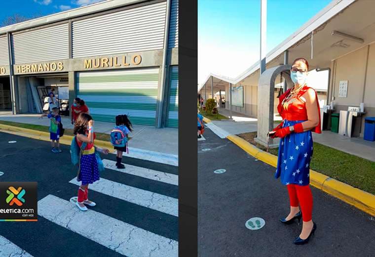 La escuela pública María Vargas Rodríguez, ubicada en Ciruelas de Alajuela, sorprendió a la comunidad estudiantil este lunes: superhéroes recibieron a los estudiantes en su regreso a lecciones presenciales.