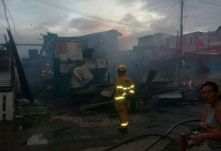 Un incendio consumió varias viviendas en el sector de Pavas, la mañana de este jueves.