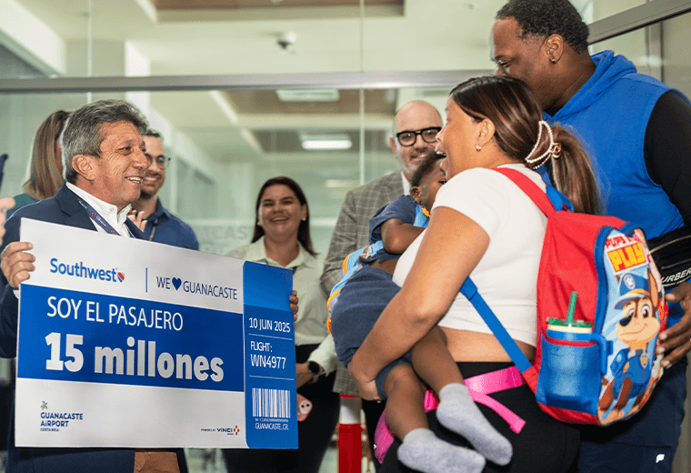 César Jaramillo, gerente general de Guanacaste Aeropuerto, explicó que, para ellos, 15 millones es más que una cifra, “representa la confianza que miles de viajeros y de aerolíneas que depositan en Guanacaste como destino de primer nivel. Esto nos impulsa a seguir fomentando la movilidad positiva y el crecimiento sostenido, apoyados en la dedicación, compromiso y pasión por la calidad hacia quienes eligen nuestra región para vacacionar o hacer negocios”.