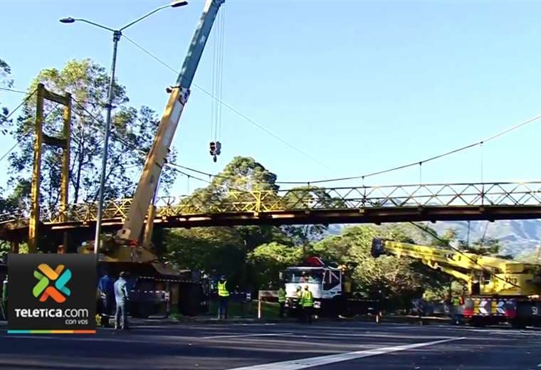 Un equipo de Telenoticias constató como tres grúas y personal de la empresa encargada de dar mantenimiento a las rutas nacionales en San José empezaron las maniobras para retirar la estructura. También se pudo apreciar la llegada de máquinas de acetileno, necesaria para cortar cables y acero.
