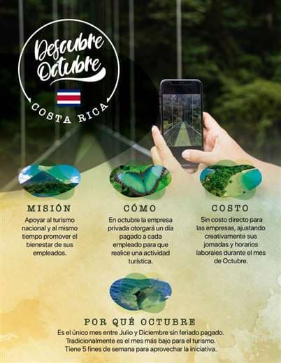 Distintas empresas de nuestro país aceptaron unirse a la iniciativa “Descubre octubre”, que tiene como objetivo apoyar al turismo nacional al mismo tiempo que busca promover el bienestar de los empleados de dichas compañías, todo enmarcado en la reactivación económica en tiempos de pandemia de la COVID-19.