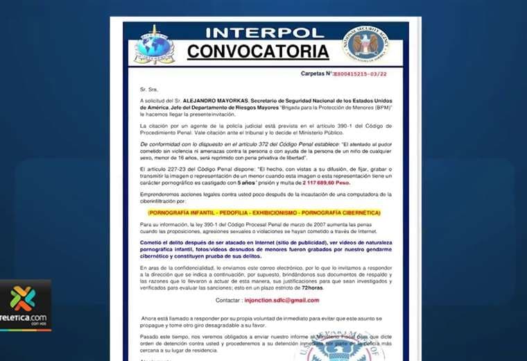 El Organismo de Investigación Judicial (OIJ) aclara que interpol no está enviando estos correos.