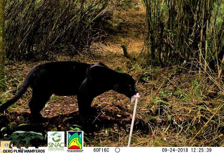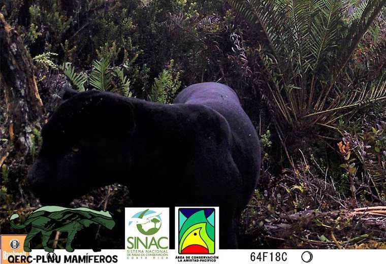 Un jaguar con melanismo, conocido popularmente como pantera negra, fue grabado mientras paseaba por la Cordillera de Talamanca.