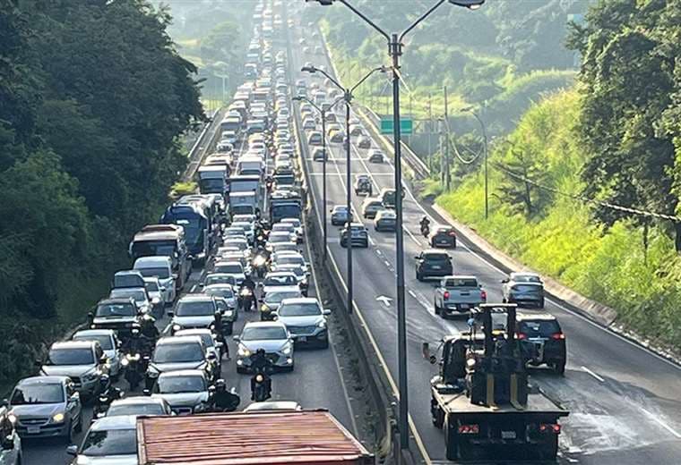 El choque involucró a un carro liviano y dos vehículos pesados, los cuales quedaron posados en dos de los tres carriles que llevan de San José a Alajuela (vea video adjunto de Telenoticias).