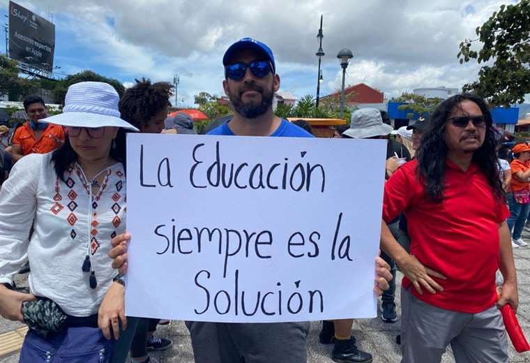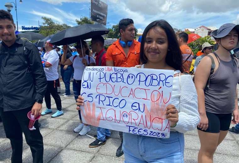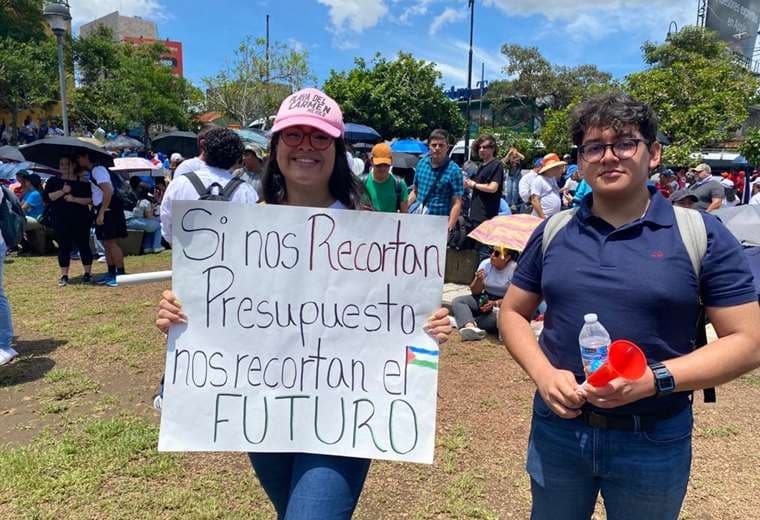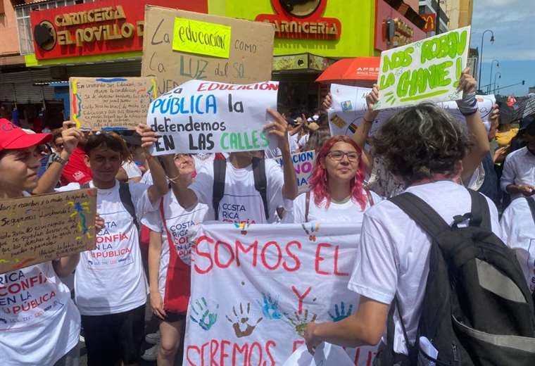 Una multitud de estudiantes, docentes y sindicatos marcharon este martes, en San José, en defensa del presupuesto de las universidades públicas.