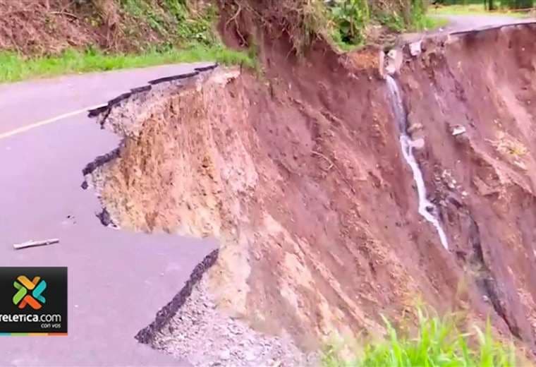 Las lluvias de los últimos días han acelerado el desprendimiento de material en un importante deslizamiento, ubicado en la vía que comunica Santa Teresita de Turrialba con Siquirres.