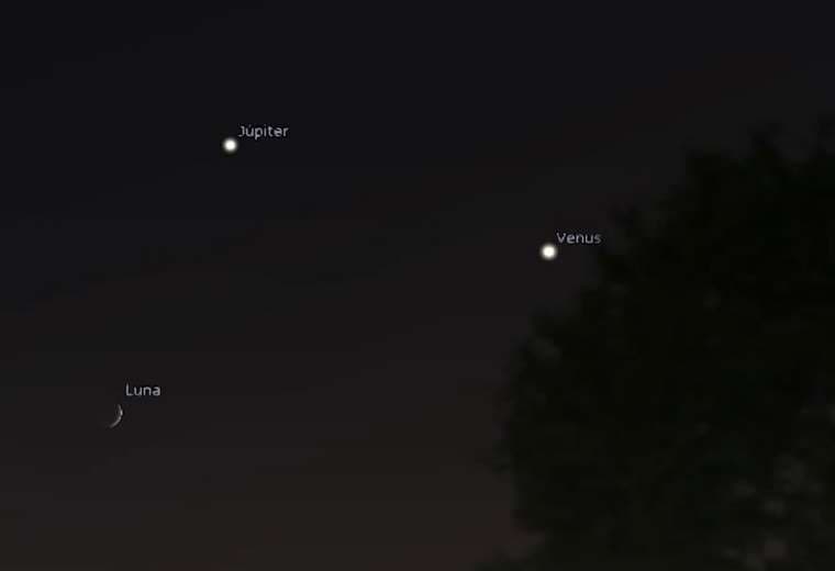 Además del triángulo formado por la Luna, Venus y Júpiter, también será posible observar a Saturno en el lado opuesto del cielo. Y si el horizonte lo permite, incluso se podrá ver a Mercurio antes de la salida del Sol.