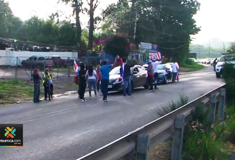 Al menos diez personas con banderas y camisas de Costa Rica se bajaron de sus carros para exponer su descontento, en la vía Cartago - San José.