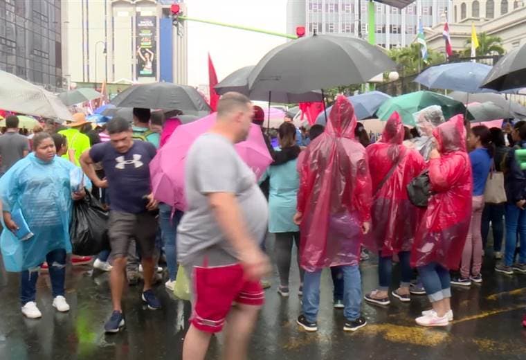 Bajo una lluvia intermitente, cientos de educadores tomaron las calles en el centro de San José con la firme intención de marchar hasta la Asamblea Legislativa.