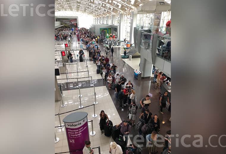 Largas y extenuantes filas fueron captadas en fotos en las terminales Juan Santamaría y Daniel Oduber de Liberia