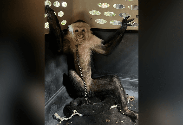 Mono carablanca sufrió graves heridas por estar encadenado del cuello