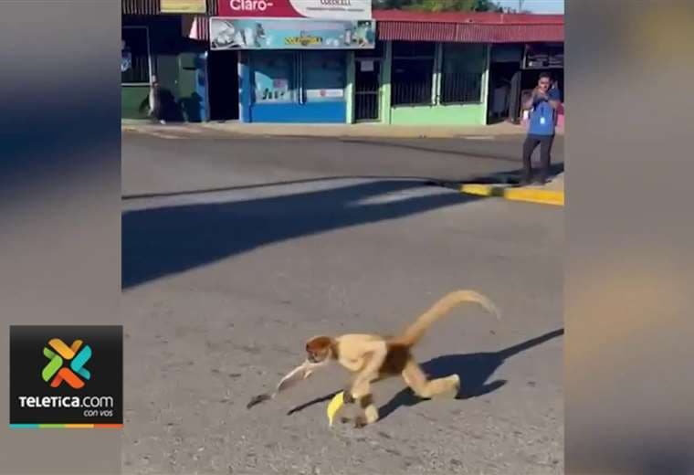 Se trata de un mono araña, ingresa al establecimiento y, después de sustraer un banano, escapa con dirección a un árbol ubicado en La Cruz.