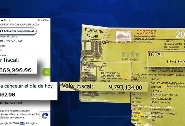 En el 2024 el valor fiscal era de 9 millones 793 mil 134 colones. Pero en el 2025 el valor fiscal del vehículo se eleva a 18 millones 660 mil colones.