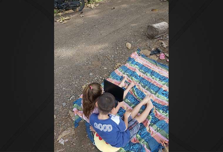 Iker de 5 años y Génesis de 6 años son dos hermanos apasionados por sus estudios, tanto así que caminan más de un kilómetro para poder llegar a un lugar donde puedan captar señal de Internet y conectarse a sus clases virtuales.