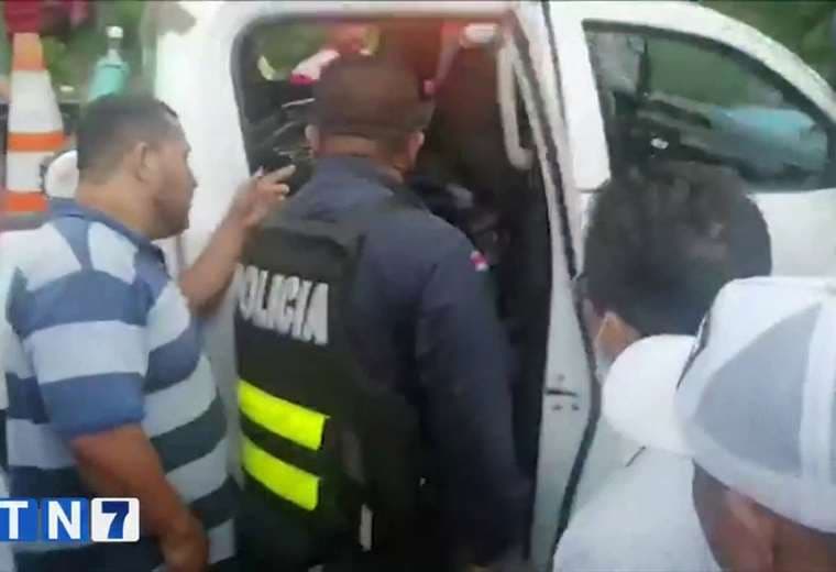 Un video muestra cómo un grupo de manifestantes en ciudad Neily, en la Zona Sur de nuestro país, obliga a dos policías a bajarse de la patrulla y mostrar lo que llevan en el vehículo.